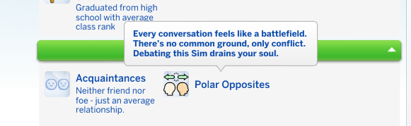 Plus it would be great if we could actively switch between the strength levels of the buffs too, just likes with the alignments themselves, as interests can fluctuate over time. Most of my teens won't be as interested in politics, but as soon as they age it suddenly becomes more relevant to them. Right now I have teens stressed over bills when they don't even have to pay anything as they are living with (young) adult / elder Sims and that feels a little odd 😅